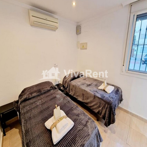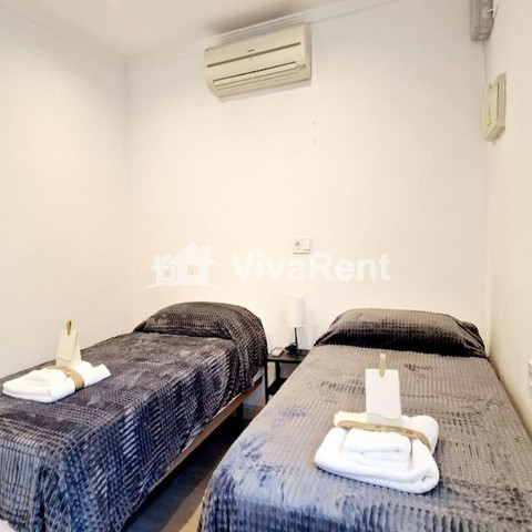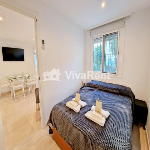 Piso en perfecto estado, recién reformado y totalmente amueblado. El apartamento cuenta con aire acondicionado, 2 dormitorios independientes, salón, cocina totalmente equipada con lavavajillas y microondas, y 2 baños. Se proporcionan toallas y ropa de cama.